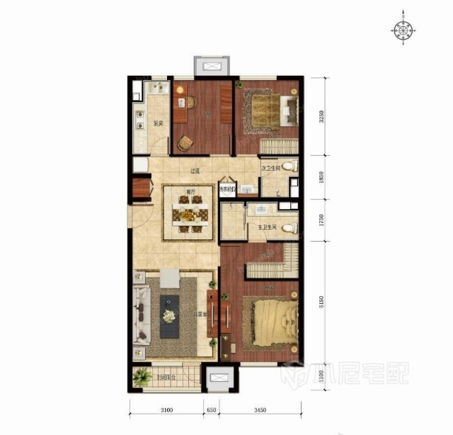 一塊地毯,便簡(jiǎn)簡(jiǎn)單單地劃分了客廳與餐廳。