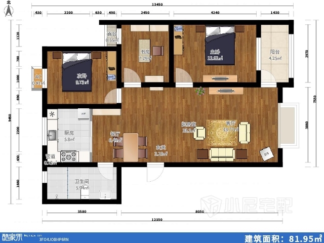 主臥實(shí)木頂角線(xiàn),實(shí)木衣柜配實(shí)木床,可以看出臥房主人的儒雅
