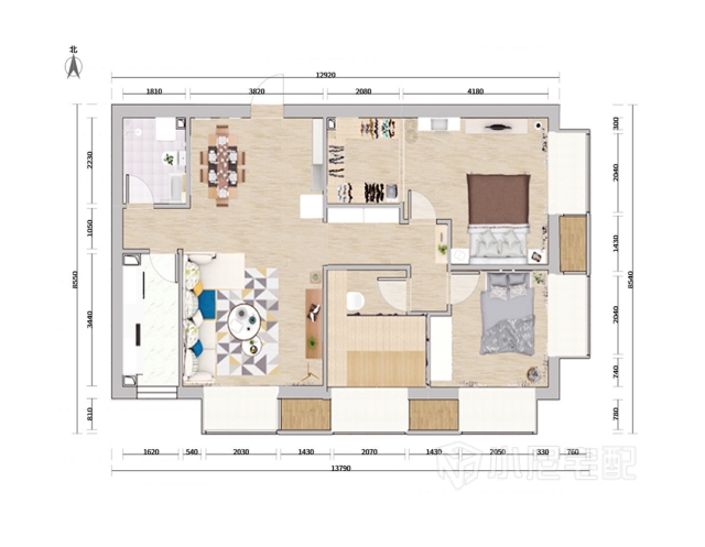 方案整體風(fēng)格趨向于簡(jiǎn)約風(fēng)格,戶(hù)型采光較好,大面積灰色并不會(huì)另空間壓抑,配合白色踢腳線(xiàn)、木地板和原木色家具,使整個(gè)空間能更好的展現(xiàn);原是三室一廳兩衛(wèi)的戶(hù)型,為滿(mǎn)足業(yè)主對(duì)于衣帽間的需要,將主臥內(nèi)的衛(wèi)生間改造成衣帽間;原戶(hù)型內(nèi)過(guò)道很寬,占用了很大的空間,后將隔墻拆改,占用一部分衣帽間的空間,使過(guò)道一側(cè)留出內(nèi)嵌展示柜的深度,弱化3米多長(zhǎng)的過(guò)道。