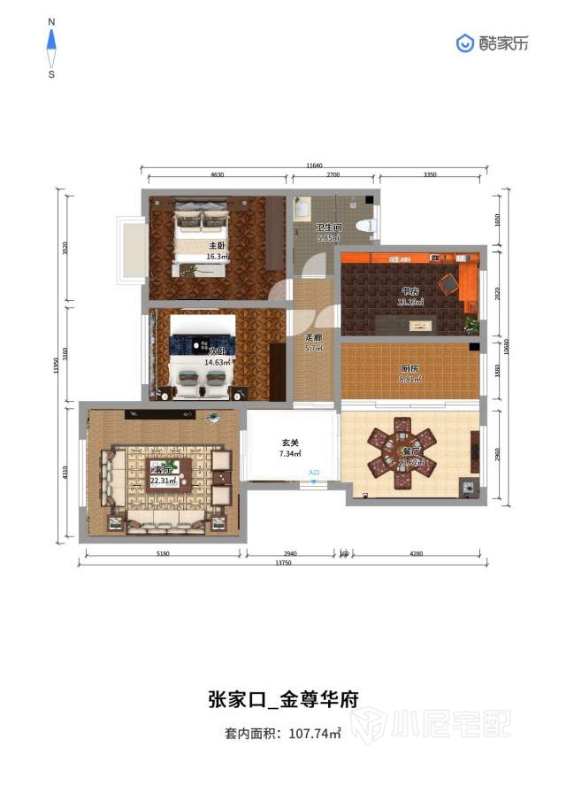 廚房比較大容納更多的電器,中式吊頂提供更高的生活品味。